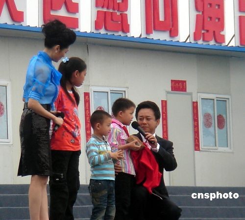 5月10日,心连心艺术团赴四川灾区慰问演出在绵竹举行,百余明星参与演出,为坚强的灾区群众送上祝福。中新社发 李乾波 摄
