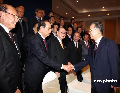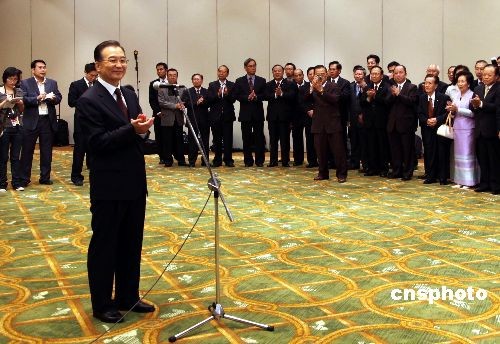 4月10日晚抵达泰国帕塔亚出席东亚领导人系列会议的中国总理温家宝,在他下榻的酒店会见了泰国华人华侨、驻泰使馆工作人员、中资机构和留学生代表。 中新社发 顾时宏 摄