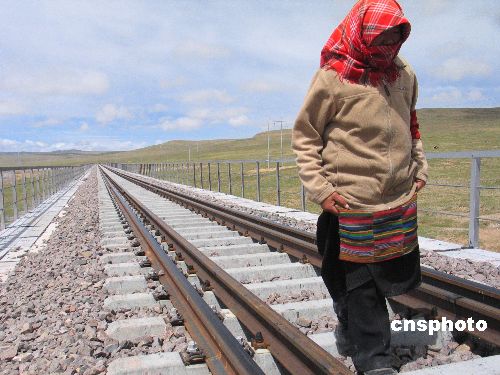 2006年6月26日,生活在青藏铁路线的藏民。青藏铁路建成通车,对于沿线的藏族百姓来说,不仅意味着经济上的强力推动,还将带来深刻的社会巨变。藏族牧民的生活也因铁路而变得异彩纷呈。 中新社发 吴芒子 摄