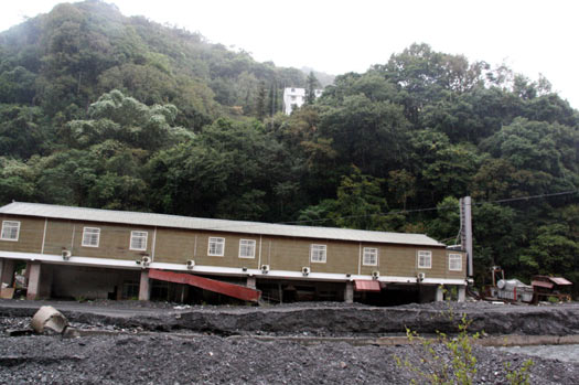 南投县庐山温泉区塔罗湾溪水患威胁,据台当局“经济部”核定的塔罗湾溪治理计划,计有33家温泉旅馆划设在治理线内,将由政府办理征收。图为塔罗湾溪疏浚现况。