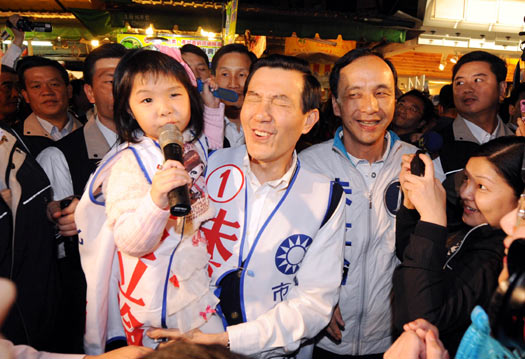 “五都”市长、市议员、里长“三合一”选举倒数3天,身兼国民党主席的马英九加强辅选力道,拉抬台北市、新北市选情。