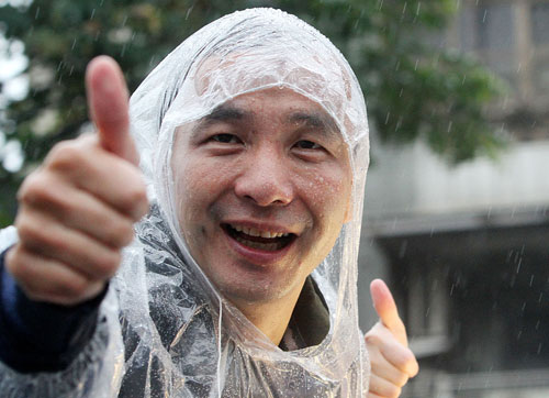 组图:朱立伦雨中拜票 不放弃任何宝贵的一票(2)