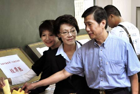 组图:“五都”选举台湾政要投票(5)