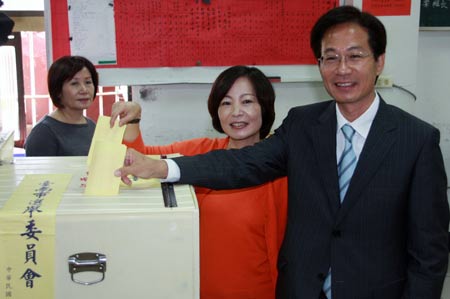 组图:“五都”选举台湾政要投票(7)