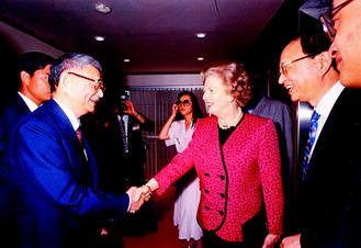 英国前首相撒切尔夫人曾拜会台湾联合报系,董事长王惕吾及发行人王必成等亲临欢迎。《联合报》资料照片