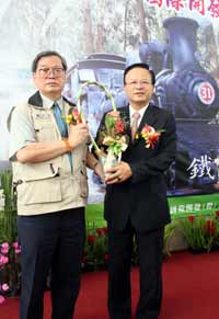 交接仪式中,陈弘毅由颜仁德手中接下象征火车行驶权意义的“路牌与通券”,并回赠代表嘉义地方民俗技艺“交趾陶”。