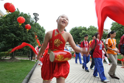 在欢迎仪式中,特奥志愿者赠送鲜花给台湾选手和教练代表,并且还安排了各种文艺演出,有当地小学生表演腰鼓舞、小区居民表演海派秧歌和民间杂艺,让台湾选手们体会上海文化特色。
