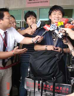 两岸周末包机正式启动,台湾音乐制作人李宗盛4日从北京搭海南航空班机,下午抵达台北松山机场。对于两岸周末包机直航,李宗盛说,对的事就要赶快做,做了就要做好。 “中央社”图