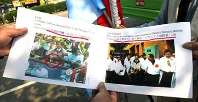 国亲联盟台中一位支持者在CNN及蕃薯网站上,下载图片比对阿扁遭枪击始末图片,提出阿扁中枪时夹克有血迹,但进入医院前却没有,质疑枪击作假。