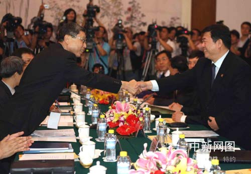 中新网北京6月12日电 12日上午10时43分许,海协会与海基会在北京钓鱼台5号楼就两岸周末包机事宜展开协商。