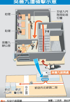 警方还透过监视录像带与目击者说法还原现场,厘清歹徒作案的六十九秒,冷静而冷血的手法利落,犹如专业杀手。监视器画面显示,二十三日上午十一时二十分零二秒,凶手连续开了五枪,在十一时二十一分十一秒离去,整起犯罪时间仅短短六十九秒。