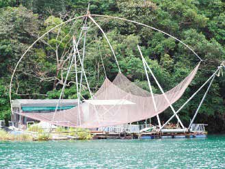 日月潭区到处可见邵族的四手网,景色相当迷人,是大陆观光客会想看的景点。 台湾《联合晚报》图