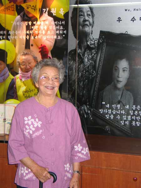 中新网7月16日电 曾被日本强迫征调为日军慰安妇的台湾阿嬷吴秀妹,今天由台湾“妇女救援社会福利事业基金会”董事长叶毓兰及董事陈淑丽等陪同,冒着大雨在首尔市日本大使馆前高唱“雨夜花”,抗议日本军国主义摧残她的青春,并要求日本政府公开道歉及给予赔偿。