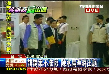 中新网8月19日电 台北地方法院今天9点30分开庭审理陈水扁的诽谤案。虽然昨天陈水扁以家中遭搜索为由,希望今天可以请假,但法官未予批准,因此今天上午陈水扁准时出庭。