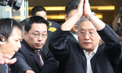 海协会副会长张铭清22日上午离开台湾前双手合十。