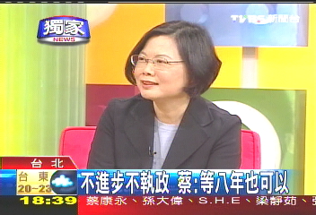 当被问到民进党什么时候可以重新“执政”时,蔡英文表示,8年也还可以勉强接受。图片来源:台湾TVBS