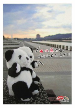 台北市府配合熊猫热,发行六款“猫熊逛台北”酷卡明信片免费索取。(来源:台湾《联合报》)