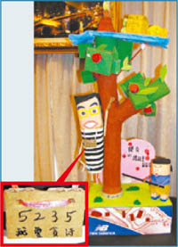 中新网1月6日电 高雄应用科技大学举办创意环保童话公仔竞赛,原诉求童话可爱风格,但一组嘲讽陈水扁弊案的《杰克与樱桃豆》创作,让阿扁穿上编号“5235(谐音‘我爱贪污’”囚衣,意外拿下铜牌。