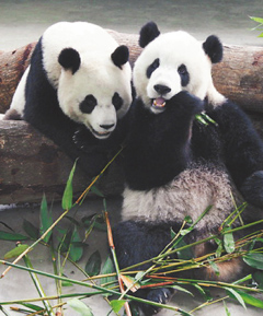 动物园指出,从团团、圆圆探索环境的动作可以发现,两只熊猫的个性大不相同。团团是个“傻大个”,很快就适应新环境,接下来的几天,一进展示场就一屁股坐下来开始啃食竹子。