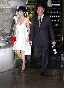 鸿海集团董事长郭台铭,高调牵着香港艺人刘嘉玲的手,出席连战长公子连胜文婚宴。台湾首富二度与同一位名女人现身公开场合,两人同搭一部车,一起喝喜酒,一起离席,还一同去KTV续摊。