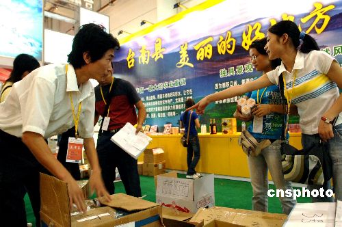 10月18日上午,参加“海峡两岸农业合作成果展览暨项目推介会”的福建代表团工作人员在厦门国际会展中心展览馆里布置展台。中新社发 郑祚声 摄