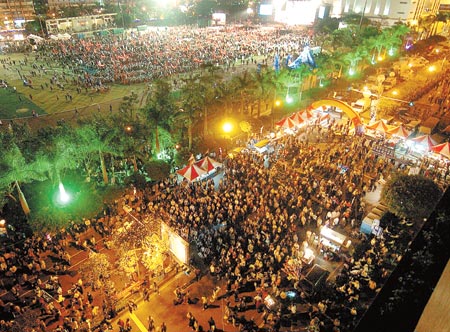 一月十一日为台湾地区“立委”选前最后一夜,台北县三重市民进党“立委”候选人的余天与国民党的朱俊晓短兵相接,两人的造势晚会仅仅一墙之隔,警方以拒马区隔,避免支持者之间擦枪走火。《中国时报》图 黄世麒 摄