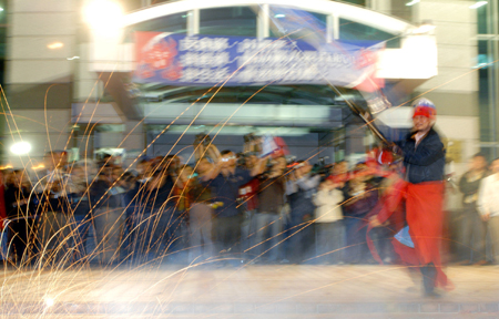 国民党在“立委”选举中大胜,支持民众欣喜若狂,十二日晚间在中央党部前放烟火庆祝。“中央社”图 王飞华 摄