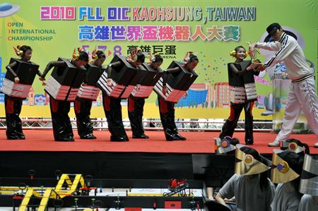 “2010FLL世界杯机器人大赛”是针对9到16岁的学子所规划的国际性机器人竞赛活动,讲求投入、分工、分享、创意与团队,比赛分成“简报”与“机器人任务挑战”两大部份;此外,选手在比赛现场还要努力宣传自己的队伍,吸引民众青睐,是一场结合智能与创意的比赛。