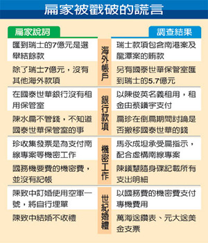 有媒体指出,民进党高层挺扁,其实是各怀鬼胎。比如许添财,此前还批判陈水扁“拿企业当提款机”,此次态度转变如此之快,不过是想借此取悦陈水扁老家台南的深绿民众,为即将到来的台南市长选举拉票。还有出任挺扁喉舌《蓬莱岛》社长的陈其迈,也是图谋高雄市长的宝座。