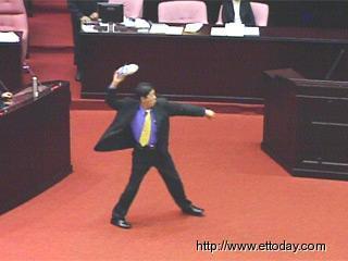 中新网4月3日电 台“立法院”再次上演搞笑一幕,无党籍“立委”李敖以抛鞋子的方式向苏贞昌质询,未料坐在台下的民进党“立委”林国庆上前护驾,不但直接将鞋“丢”到李敖身上,还趋前把李敖扯下质询台。