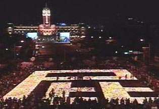 中新网9月10日电 岛内倒扁活动周年,数千名红衫军9日重返台北凯达格兰大道。民众点燃蜡烛排列一个巨大的“屁”字,以示对陈水扁当局的不满。反贪腐总指挥施明德并要求陈水扁“国务费”案速审速决。