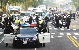 图文:吕秀莲乘防弹车拉票 当街抛锚动弹不得