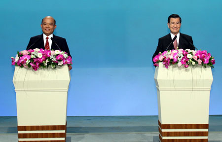 苏贞昌与萧万长通过两轮交叉方式发表政见。( 图:“中央社”)
