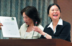 据台湾《中国时报》报道,赖幸媛重回她熟悉的“立法院”战场,首先发言的民进党“立委”薛凌,突如其来拿出拟好的承诺书,走到赖幸媛面前要她在上头签字。赖尴尬地笑着。