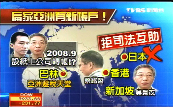 据台湾TVBS报道,或许该这么形容,扁家的国际观、在资金处理上显露无遗。因为除了已曝光的5间纸上公司,9月初艾格蒙联盟又查出,扁家在亚洲有一个未曝光的账户,而且不是在新加坡,也排除了不肯提供司法互助数据的日本,除了香港,另一个可能就是亚洲知名的避税天堂巴林。