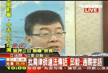邱毅说:“一个辩护律师,和被告在看守所见面后,可以为被告传递消息?发表十点声明?可以为被告向社会大众说‘撩落去’?陈水扁利用律师郑文龙传递所谓的通关密语!我认为这是陈水扁召集民众包围土城看守所的通关密语,要不然甚么叫做‘撩落去’?”