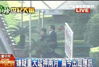 而在陈水扁车队离开看守所时,有支持民众前来相挺。另外北院昨天已裁定将延押扁2个月,高等法院也驳回扁律师转移管辖法院的申请,因此今天陈水扁对延押有何反应将是庭讯重点。
