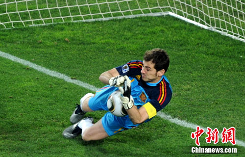 7月4日凌晨,南非世界杯最后一场1/4决赛打响,西班牙在约翰内斯堡的爱丽丝公园球场迎来了南美劲旅巴拉圭队。在门将卡西利亚斯扑出点球后,比利亚第83分钟取得进球,西班牙1-0击败巴拉圭晋级四强。