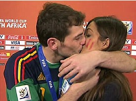 西班牙在首战对阵瑞士的小组赛中被中场费南德斯攻进一球,卡西利亚斯扑救不及,让西班牙最后输掉比赛。当时,卡西的美艳记者女友卡波内罗就站在球门后。她在赛后现场报导时毫不客气地质问男友:“你是怎么把比赛搞砸的?”