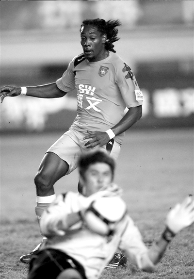 长春亚泰的作风令新帅非常欣慰。图为青岛队球员布朗在门前包抄。