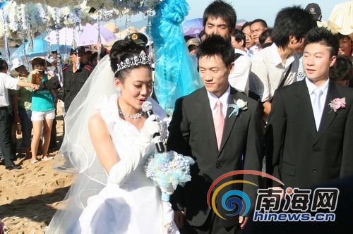 当主持人鲁豫要求杨威说出最想对新娘说的话时,杨威一句“杨云,我爱你!”脱口而出,等不及主持人说出新郎可以亲吻新娘,便忍不住拥吻杨云。被鲁豫笑说违规操作。而新娘杨云的那句“我也非常爱你!”回应的那般深情。