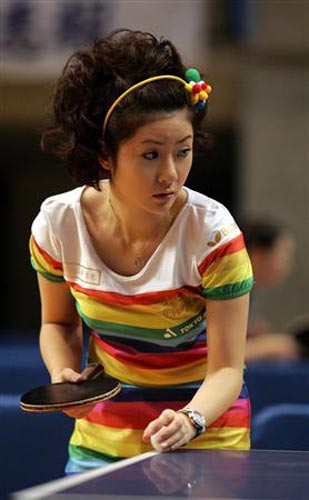 在日本乒坛,福原爱名声最大,其次就是有着漂亮脸蛋、性感身材的四元奈生美了。今年30岁的四元在日本的影响并不比福原爱低多少。从2007年的全日本乒乓球锦标赛至今,这位美女球员每次比赛都会换上不同的时尚超短裙,或是露出香肩的吊带衫参赛。而且,她的头饰也都是经过发型师精心设计的,爆炸式、淑女式……总之,五颜六色的服装+各类怪异的发型+比赛场上挥拍动作都是那么的迷人,相比于其他运动员的一脸严肃,四元奈生美在赛场上刮起的时尚之风迷倒了很多日本男球迷。