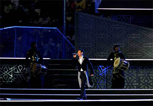 值得一提的是,在运动员入场之前,中国歌手张学友演唱的亚运会主题歌Together Now,唱得荡气回肠,博得了场上数万观众热烈的掌声。此外,世界三大男高音之一卡雷拉斯和黎巴嫩艺术家鲁米韦思一起,奉献一首二重唱,展示了世界级歌王的风采。