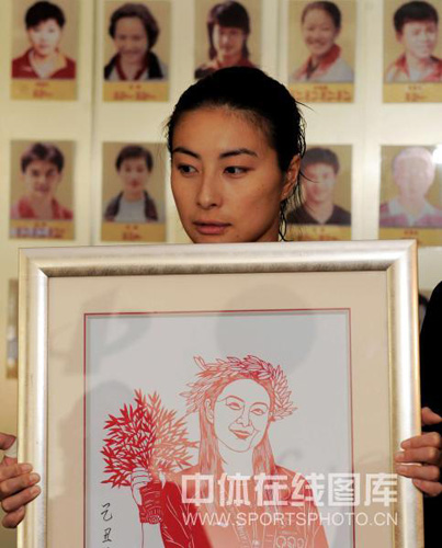 郭晶晶获赠奇特剪纸作品 开心笑容美艳如花(图)(6)