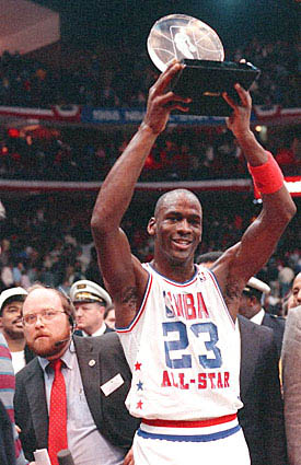 1988年,乔丹首次成为全明星MVP。