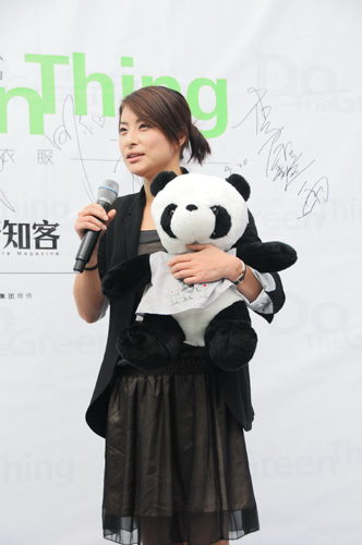 郭晶晶、秦海璐率众文体明星参加李宁品牌推出的环保创新概念系列服装发布会,号召人们关注服装的碳排放问题,从穿着低碳装开始,呵护地球家园。图为活动现场。