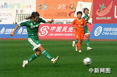 下半场,河南队抓住北京队后防线上的漏洞,11号李东玲在大禁区内射门,虽为河南队扳回一分,终因两队实力悬殊,北京队以绝对的优势赢得了这场比赛。