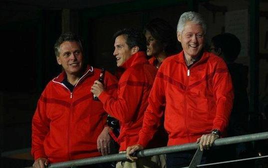 其实除了观看比赛,给队员们打气,克林顿还肩负着另外一项重要任务,——他是美国申办2018或2022年世界杯的名誉主席。在美国队击败阿尔及利亚队后晋级八强后,他才发现自己幸运地可以看第二场的淘汰赛。