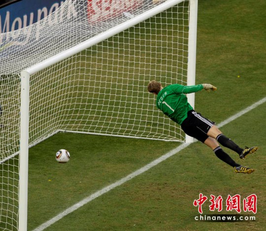 德国队在上半场很快就以2比0领先,但英格兰队随后发起绝地反击,在第37分钟和38分钟连入两球,但后一个由兰帕德远射打入的一球,在击中横梁后越过了球门线,不过主裁判拉里昂达却在征询了边裁的意见后,判此球无效。