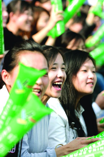 “拉拉队志愿者并不是和外界想像的那样一定要漂亮,关键是要有亲和力。”张洋介绍说,因为他们的主要职责就是要带动现场的气氛,这需要观众的认可,如果让一个不被观众接受的志愿者去引领,那就很难达到理想的效果。为了达到这个要求,队员们在培训期间每天都要对着镜子微笑两个小时以上。